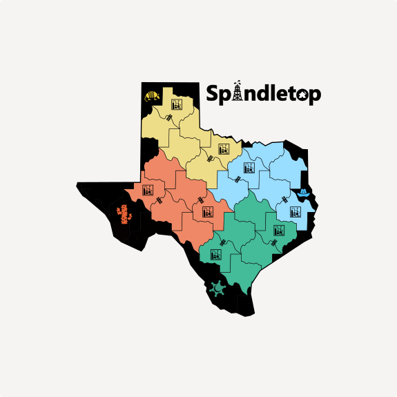 It’s 1901 and oil has just been discovered in Southeast Texas at Spindletop, a massive gusher near Beaumont. You take ownership of an oil company as you race to capitalize on this newfound black gold. In the game, you’ll balance a hand of cards, using some to take actions across the map (with Texagons!) and keeping others in hand to position yourself for a game of Texas Hold ‘Em at the end of each round. Recruit workers, prospect for oil, build infrastructure, and sell oil to gain revenue, but manage your debt so it doesn’t ruin you at the end of the game. Spindletop is a risky game of crude profits!