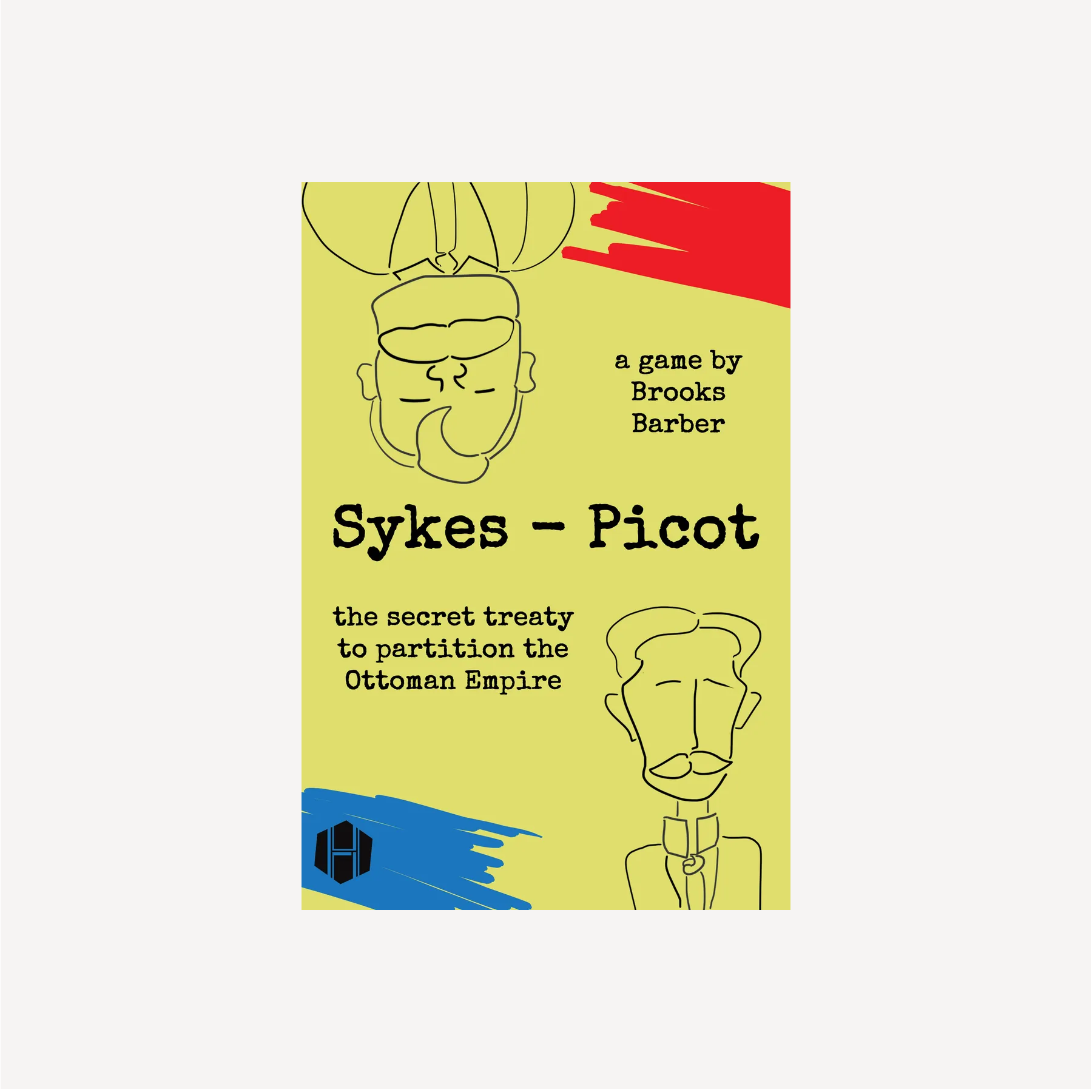 In this game, two players take on the roles of infamous diplomats Mark Sykes and Francois Georges-Picot, using red and blue markers to carve out territories to control and to influence on a dry-erase map. Trick-taking card play and table-talk negotiations drive the proceedings, with the winner of each trick choosing one of the two cards to implement, and the loser consoling themselves with the remaining card. Each player has a set of hidden objectives they’re trying to achieve. Players may be as cooperative or as competitive as they wish in pursuit of these goals.